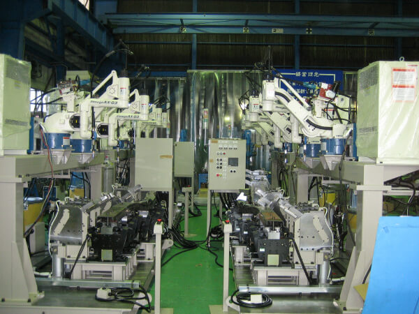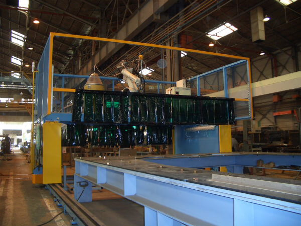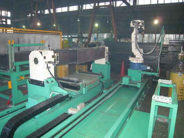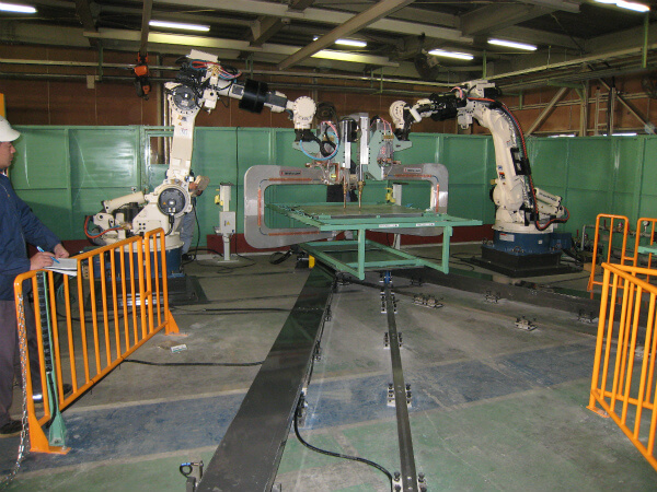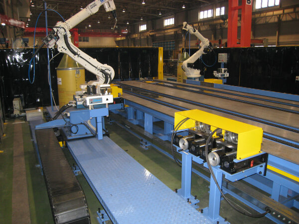 溶接作業のラインをロボットシステムで自動化、省人化する装置です。 スライダー、ポジショナ、天吊り等を組み合わせたシステム構成でも納入実績があります。
