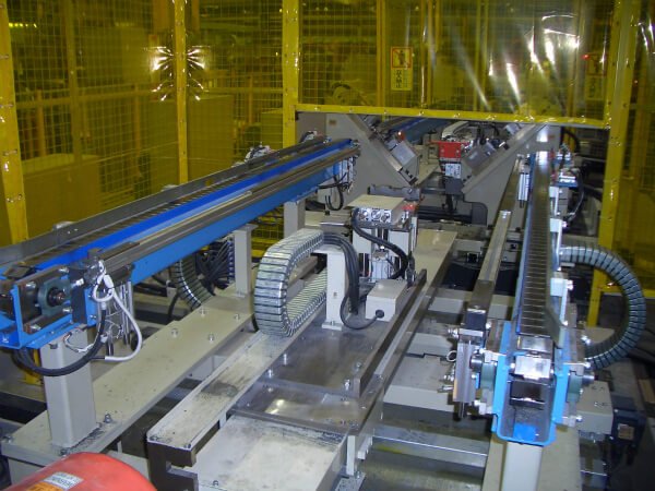 加工機への材料投入・取出し(ローダー/アンローダー)、材料や部品の整列・搬送、パレタイズ装置等を製作しております。 10gほどの小物部品搬送から、1t程度の重量物の運搬、繰り返し作業等の自動化が可能です。
